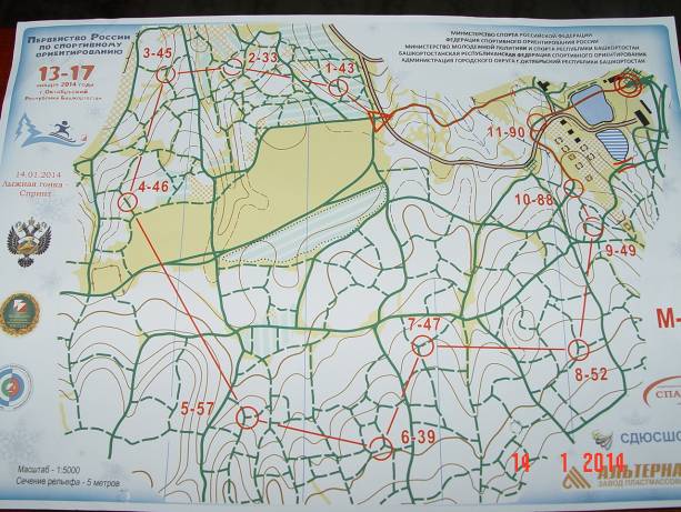 Первый беговой день 14.01 был спринт. Погода была теплой около 0. Всех наших спортсменов я заявил в последние забеги, стартовые минуты начинались с 13-00 местного времени. Это давало возможность нам выспаться (ложились мы в 23-00 местного и вставали в 10-00 местного) и нормально позавтракать. Первые два старта начинались в 12-00, последний день в 11-00. Старт и финиш находились недалеко друг от друга. Все дни организаторами была предусмотрена изоляция спортсменов на финише (лыжная база), поэтому всю одежду на старте мы складывали в подписанные мешки и судьи их относили на финиш. Спринт проходил по карте масштаба 5000 и был скоротечным. Грубых ошибок никто не допустил, но после разбора стало ясно, что девочки пытались использовать более прямые варианты (по узким лыжням) и на этом проигрывали. На классику всем дал задание использовать скоростные лыжни. Результаты спринта: